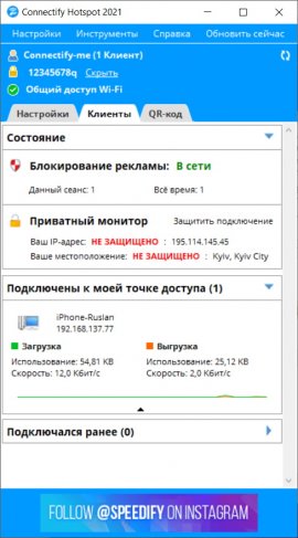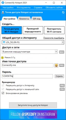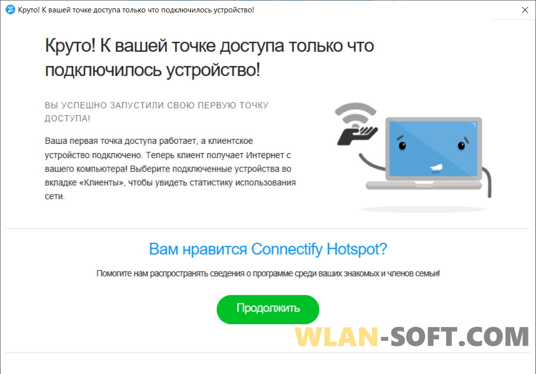 Connectify Hotspot in Russian is available officially. The free version has a number of limitations: